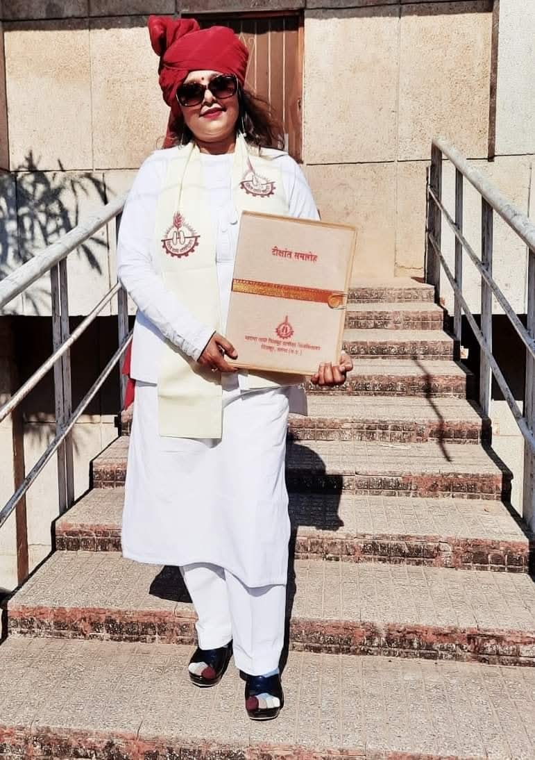 She later advanced her learning under the revered Late Pandit Arjun Mishra ji, following the Guru-Shishya Parampara, and became his Gandabandh Shishya. Under his guidance, she honed her art with deep dedication and introspection.